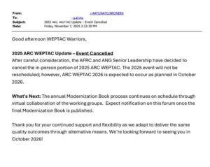 2025 AFRC WEPTAC & MAG Exchange Cancelled