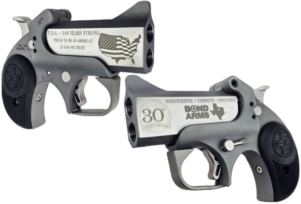 Bond Arms is celebrating their 30th Anniversary with the introduction of the 30th and the 30th XL, both of which honor the greatest country in the world—the United States. The 30th features Bond’s rough series hand-cannon frame, which cradles a special edition 3″ barrel that is engraved on both sides and chambers their mighty 45/410. The 30th XL uses the extended B6 Resin grips.