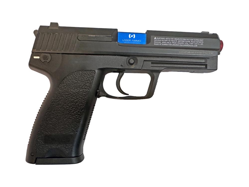 Laser Ammo USA announces the launch of its Recoil Enabled H&K USP training pistols, offered in both Compact and Full-Size .45 models. These innovative training pistols, officially licensed Heckler & Koch USP from Umarex, are outfitted with Laser Ammo’s REAL (Recoil Enabled Airsoft Laser) Conversion Barrel and feature a PST (piston) cap in Red or Infrared laser.