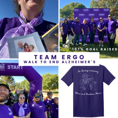 This fall, ERGO joined thousands of walkers nationwide for the annual Alzheimer’s Association Walk to End Alzheimer’s®. Team ERGO walked in loving memory of ERGO founder Stephen Hines and his wife Barbara, both of whom battled dementia in their later years.