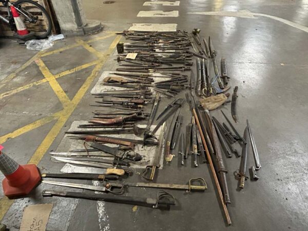 Police in England seized 129 antique edged weapons, claiming they were contraband. An arms expert says none of the antiques are illegal to possess.