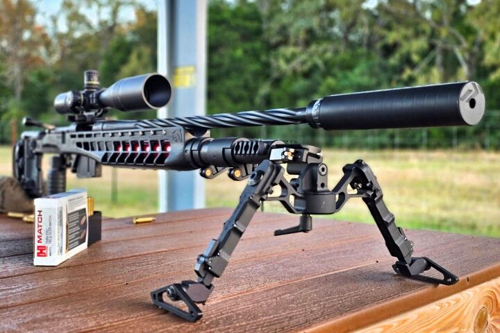 Perched on a windswept ridge at Sellmark Ranch, Freestone County, Texas, this Alamo Precision Rifles custom 7mm PRC is pure long-range poetry. Built on an Accuracy Solutions Baby Orca chassis in stealthy black, it wears a threaded barrel with a Kovix Timberline 6″ titanium suppressor that keeps it whisper-quiet and perfectly balanced. An Accu-Tac bipod locks it rock-solid on the shooting table, while Hornady’s precision ammo waits in the magazine, ready to reach out past a mile with authority.